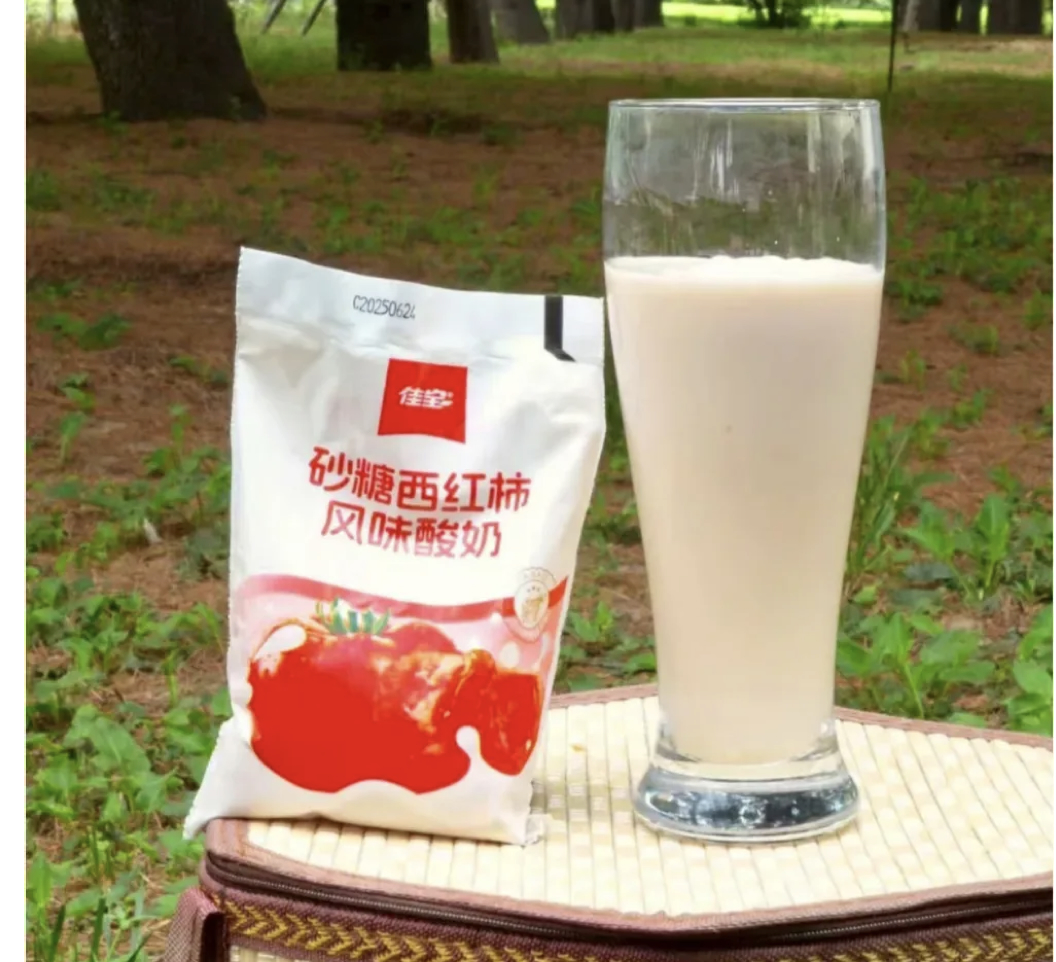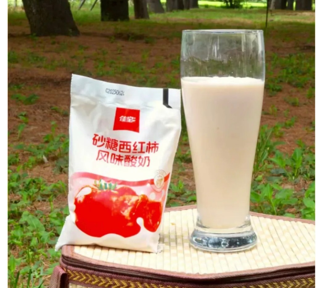 Chinese like to eat sliced tomatoes with a little sugar as a snack or starter. Jiabao from Guangdong is offering sugared tomato milk.