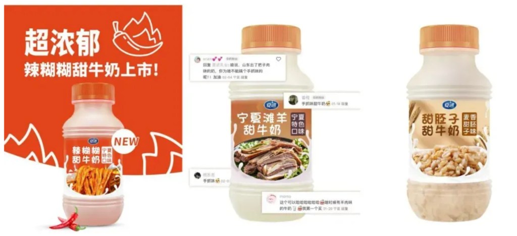 I have introduced yoghurt and ice cream with peculiar flavours that are more in line with traditional flavour patterns of the Chinese, to mask the ‘creamy’ flavour of milk. In this post, I will introduce dairy products flavoured according to entire classic Chinese dishes, as available in China at the date of this post. Most of these are not produced by the large national dairy giants like Yili or Mengniu, but by regional or local companies.