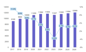 The following table shows the development of the market and the projections for 2026 (Value in RMB 100 mln and Growth in %).