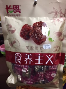 Fuyuan Food (Binzhou, Shandong), is also producing a date enriched with ejiao: Changsi brand Ejiao Royal Dates. Another, sweeter and stickier, version is sold under the Selective (Zhenxuan) brand (Zibo, Shandong).