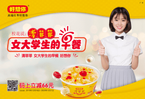 Late 2019, Haoxiangni launched a breakfast replacer with dates, specially marketed among female students, under the brand name Qingfeifei.