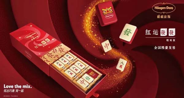 A related trend that started during COVID-19 time is the national(ist) trend (guochao), a nostalgic trend reviving traditional Chinese symbols. Haägen-Dasz followed suit early 2022 by launching a box of ice cream of various flavours packed as a box of Mahyong stones.