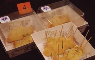 This ‘seafood round dance’ uses rounds of squid, egg, scallops and crab meat as raw materials. According to the inventor, it this product should have a huge potential market. Who will give him an opportunity to test it out?