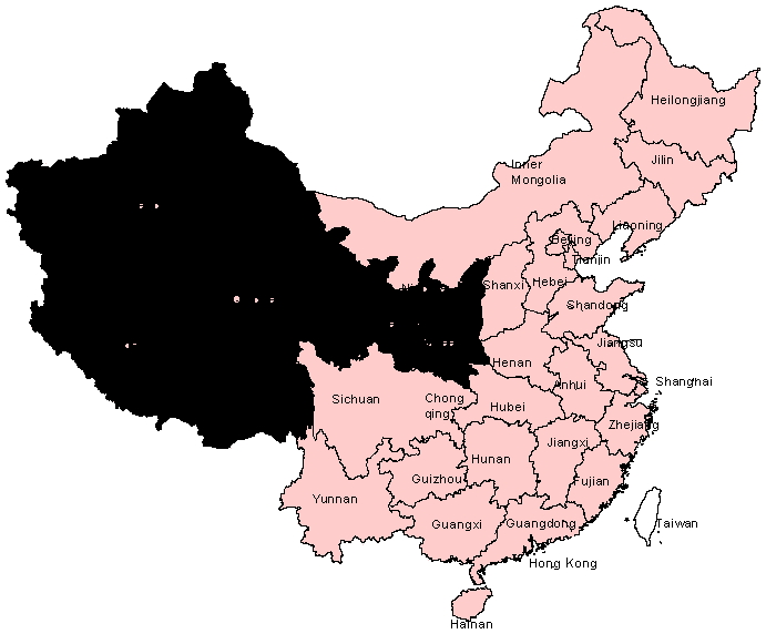 Shaanxi, Qinghai, Xinjiang, Tibet