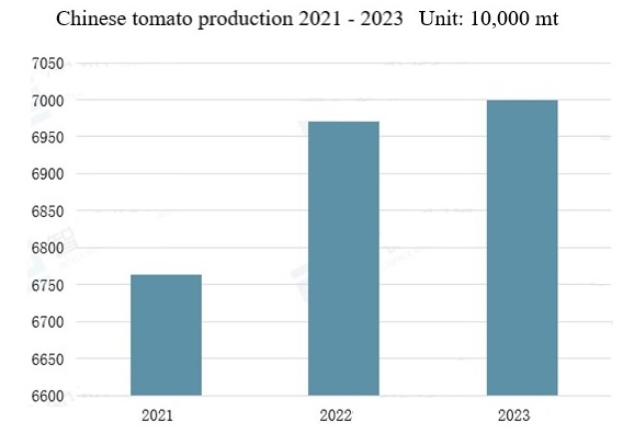 In recent years, China’s tomato planting area has stabilized between 1.2 and 1.3 mln hectares, ranking the fourth largest vegetable variety in the country and has become an important part of the agricultural industry. The planting area is an important factor affecting the yield of tomatoes, so its stability will ensure the yield of tomatoes to a certain extent. The data shows that in China’s tomato production continued to rise during the past few years reaching more than 70 mln mt.