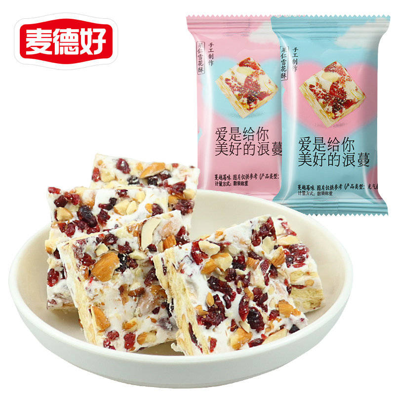 What I prefer to call nougat here is ‘almond snow brittle’ in Chinese, a biscuit sandwiched between layers of nougat. However, it is nougat with more than 9% cranberries and more than 8% almonds, and the inevitable additives like ethyl maltol, sodium bicarbonate, flavours, etc. You pay a price for the perfect combination of flavour and texture. The packaging is also beautifully designed. The text on it says: ‘Love is giving you beautiful romance’. Well, it sounds better when read aloud in Chinese.