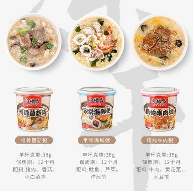 ‘Instant’ is, and will remain, a key term in this section of my blog. Today I am posting an innovative instant congee by Haifusheng. The flavours shown here are spare ribs + mushrooms (ingredients: pork, shiitake, cabbage), home-made seafood (ingredients: squid, celery, onion), and stewed beef (ingredients: beef, daylily, wood ear).