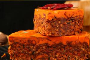 Hot pot is hot in China and the Chongqing hot pot with its fiery broth is one of the favourites. Several ready to use seasoning packs are already on the market, but Shiji has launched a version in the form a pack of cubes. You can break off one or more for your pot, depending on the spiciness you require. The picture shows that it includes a generous layers of lard.