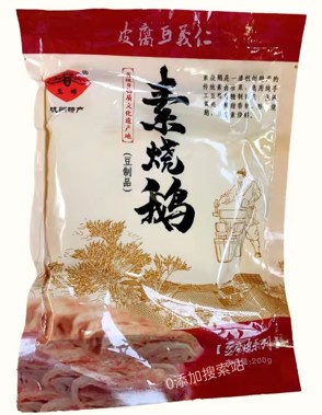 As stated in my post on vegetarian food in China, this country has a long history of vegetarian cooking that mock traditional meat dishes. Several of these products have been adapted for industrial product. This vegetarian goose meat by Yuchan Food does not only taste like succulent pieces of roast goose, but also looks and smells like it. The mock meat is even covered by mock goose skin with the proper mouth feel.