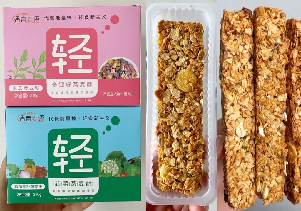 Interest in oat meal is still growing in China. Xiangyan Maiyu has launched a series of (very) crispy biscuits with oat as the main ingredient. They are marketed as fitting in the modern ‘light eating’ vogue. There are two varieties: chia (pink pack) and vegetables (green pack).