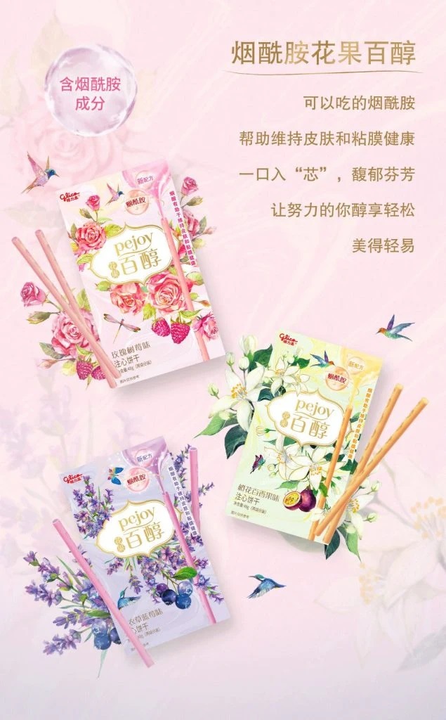 In 2020, C-beauty brand CHANDO and the snack brand Pejoy jointly launched a combo of breadsticks from Pejoy and facial masks from CHANDO, allowing consumers to treat themselves to a mask session with a complementary tasty snack. Both products contain the ingredient niacinamide, a form of vitamin B that has recently become super trendy in the beauty industry for its skin-brightening effect.