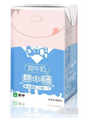 Mengniu has launched a sweetened milk, Tianxiaohai, that comes in separate female (pink) and male (blue) packagings